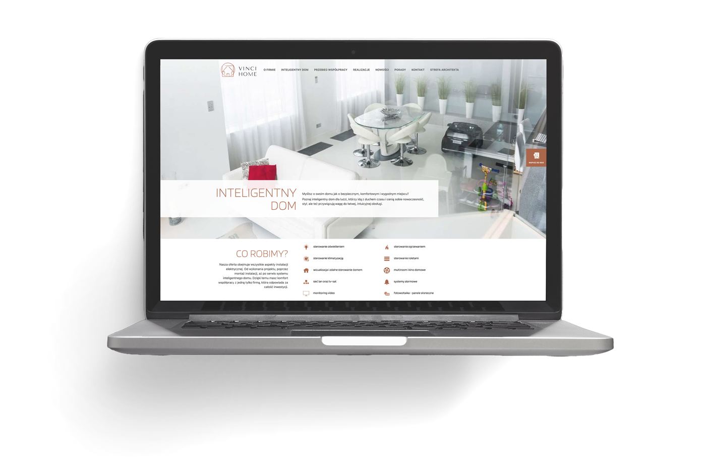 Przedstawiamy nasz projekt serwisu internetowego dla firmy Vinci Home, specjalizującej się w rozwiązaniach dla inteligentnych domów. Nasze prace obejmowały: